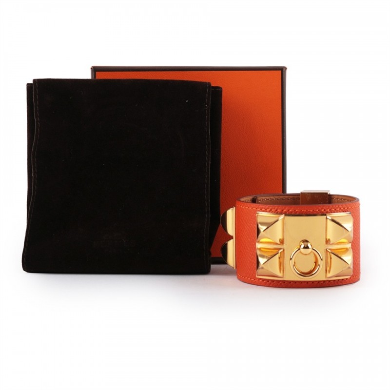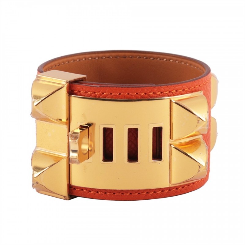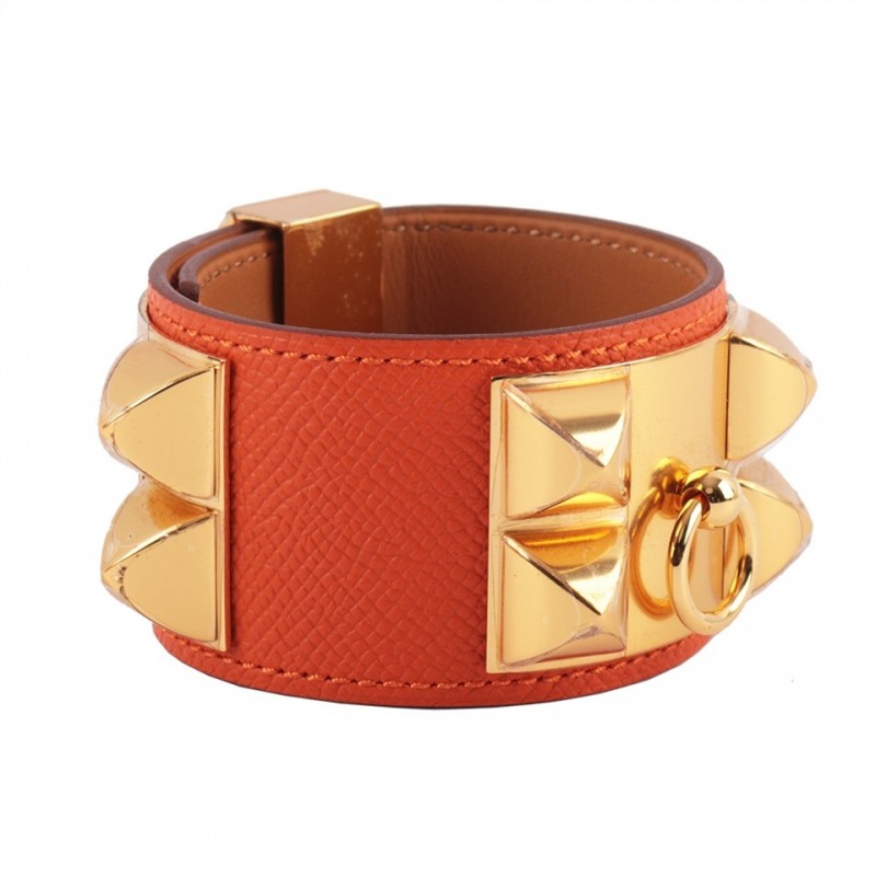 HERMES EPSOM皮 鉚釘金釦CDC手環 (S)(橘色) HE44000040